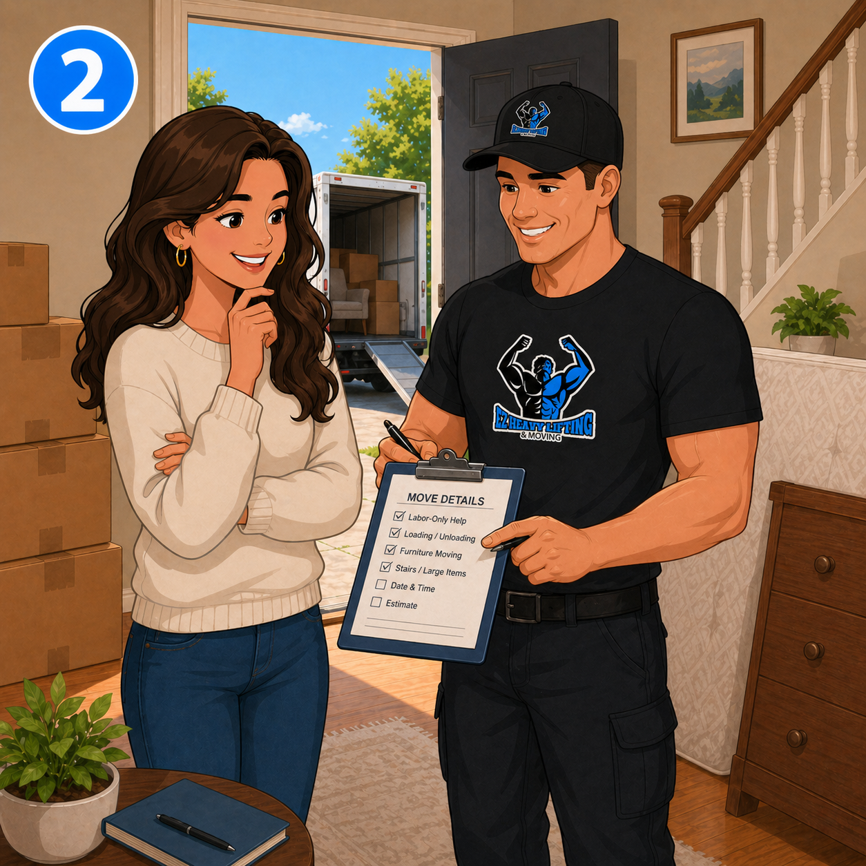Call, text, or fill out our quote form. Let us know if you need loading, unloading, furniture moving, storage unit help, or heavy-item moving.